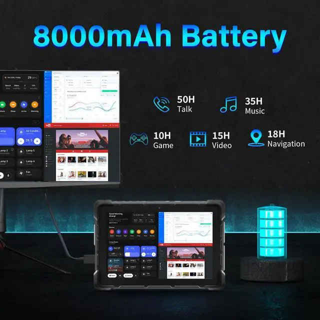 Rugged Protection Dual IP67 and MIL-STD810G certified, this Industrial Windows Tablet is ideal for extreme applications and comes with sealed buttons and ports, shock absorbing rubber corners and a rigid enclosure for extreme durability and protection against vibrations, shocks, drops or liquids, high and low temperatures (-10°C to 55°C), high humidity, and dusty environments whether it be on a Whether on construction sites, in the field, in warehouses or on outdoor adventures, it guarantees reliable performance in the harshest conditions, perfect for field workers, architects, engineers, electricians and maintenance personnel.