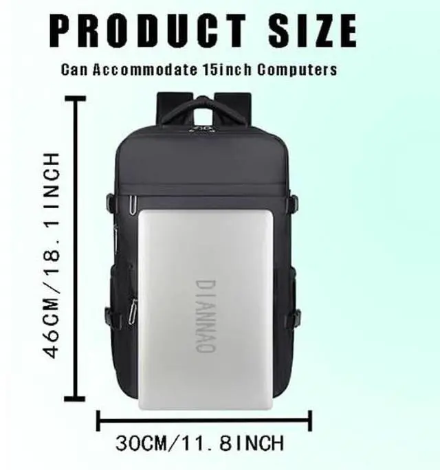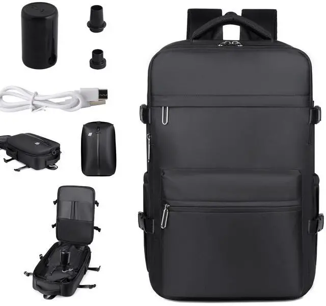 Elevate your professional travel experience with this sophisticated laptop backpack designed for the modern business traveler. The sleek black water-resistant nylon construction offers durability and style while protecting your valuable gear from the elements. This backpack features multiple well-organized compartments to keep your essentials sorted and accessible, including dedicated spaces for your laptop and other devices. The large capacity design accommodates everything needed for business trips or daily commutes, while maintaining a professional appearance. Equipped with adjustable padded shoulder straps and side compression buckles, this backpack ensures comfortable carrying even when fully loaded.