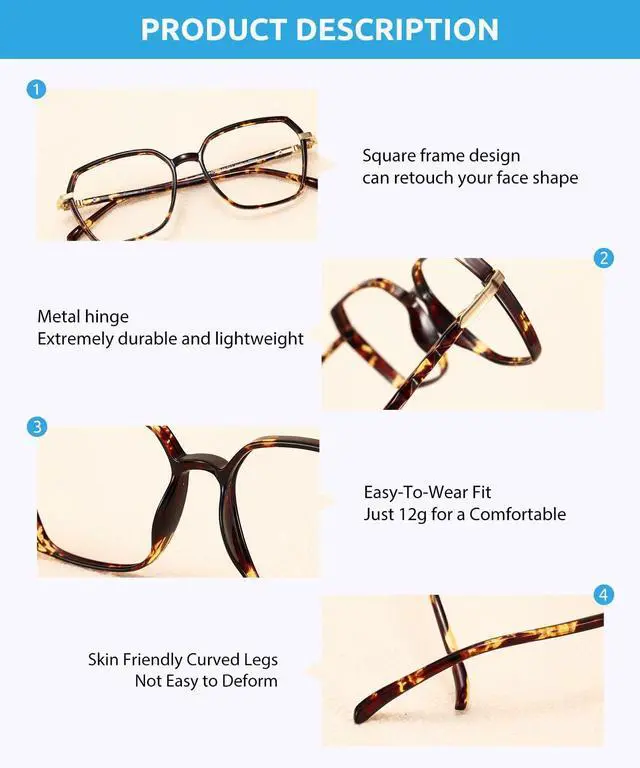 FIRMOO DESIGN - Square shaped frame can retouch your face and give you a trendy look with a variety of color choices. Durable and lightweight, you can barely feel that you have it on, which makes it comfortable to wear for an extended period