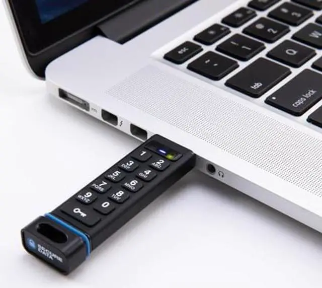 SecureData SecureUSB KP 64GB Hardware Encrypted USB 3.0 Flash Drive FIPS 140-2 Level 3 Unlock via Keypad TAA Compliant, CJIS, HIPAA, CMMC, GDPR Compliant, Works with Mac and Win Free AV