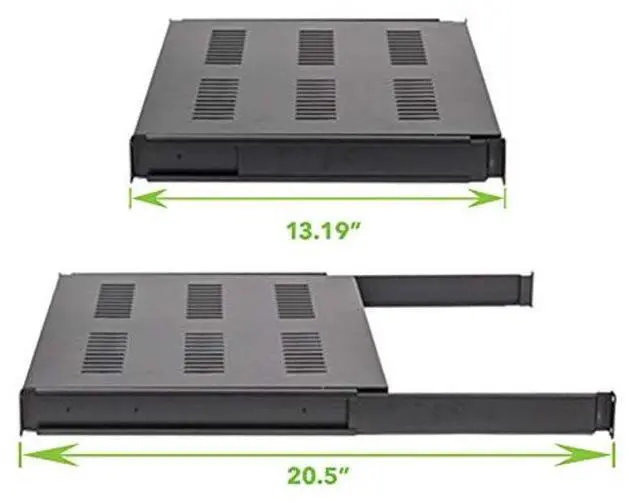 Navepoint 1U 19-Inch Sliding IT Network Cabinet Shelf 20.25" Max Mounting Depth Cabinet Enclosure Black