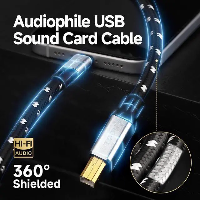 Stronger & More Stable: To enhance the signal transmission of audiophile USB printer cable, we've designed a tinned copper braided shielding around the conductors to reduce EMI, RFI, and crosstalk. This shielded USB type C to B cable delivers pure musical enjoyment without hum or static. Making this USB 2.0 DAC cable the ideal choice for audiophiles