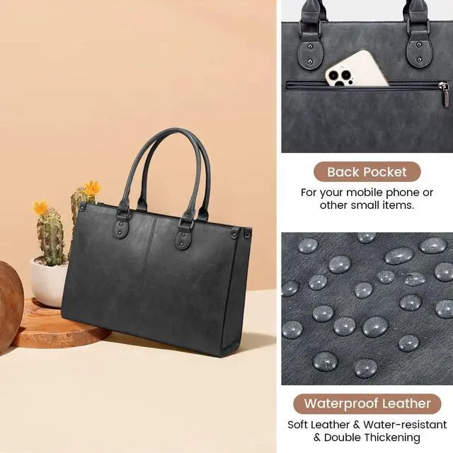 Durable Handbag: This women's briefcase is crafted from vintage vegan leather and lined with high-density nylon, offering Waterproof and scratch-resistant. The widened bas