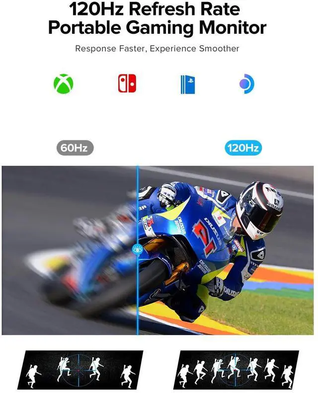 120Hz Gaming Touch&1ms Response: The 120Hz refresh rate of the portable monitor battery provides silky touch and visual effects, eliminating motion blur in fast-paced FPS and racing games, while the true 1ms response time ensures perfect pixel accuracy, turning momentary reactions into victories in the game