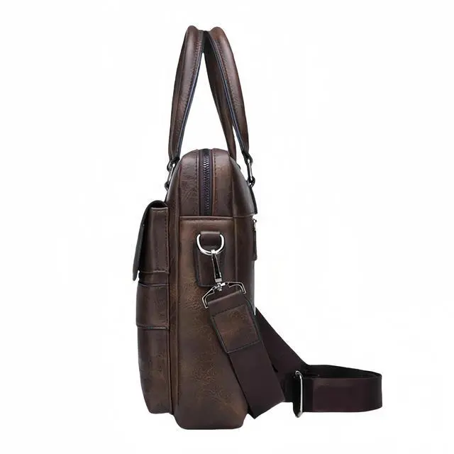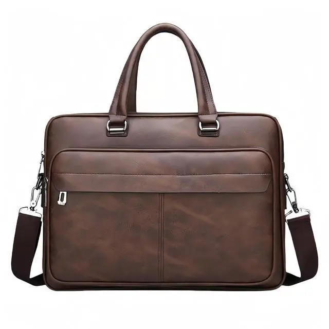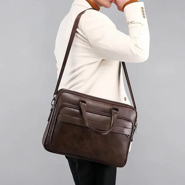 Elevate your professional style with this sophisticated 16-inch vintage leather laptop briefcase. Thoughtfully designed for the modern professional, this versatile bag seamlessly transitions from a briefcase to a messenger bag with its adjustable crossbody strap. The spacious main compartment safely accommodates your laptop while additional pockets keep your business essentials organized. The classic leather construction and retro-inspired design deliver a timeless aesthetic that's equally at home in the boardroom or on campus. Perfect for daily commutes, business meetings, or academic pursuits, this satchel combines functionality with distinguished style. The robust build ensures your valuable electronics and documents stay protected, while the sophisticated silhouette makes a strong professional statement.