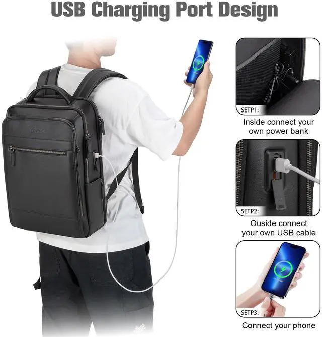 USB/Type-C Charging Port DesignExternal USB and Type-C port with set-in charging cable offers convenient charging your cellphone.The bulky power bank can be put directly into the backpack, without holding the charge in your handThe product does not include a power bank/Battery Pack
