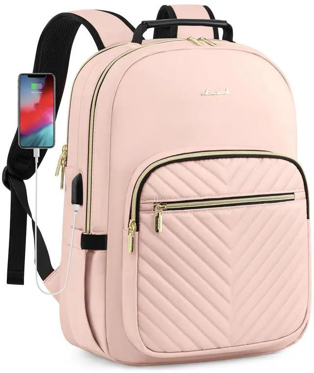 LOVEVOOK Laptop Backpack Purse for Women, Large Capacity Travel Business Computer Work Bag, Quilted Casual Nurse Backpack for Womens, Fit 15.6 Inch Laptop with USB Port, Nude
