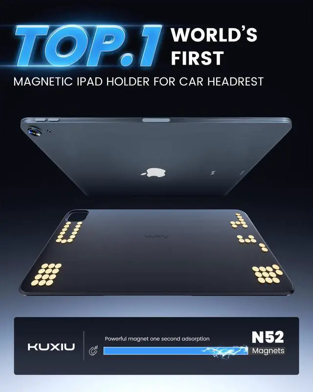 Magnetic Car Mount for iPad Pro/Air 11" M2: KU XIU Magnetic Tablet Holder for Car Headrest is specially designed for long - distance travel, camping or daily commuting. It enables back - seat passengers to comfortably enjoy movies, e - books, games and music, and is the best companion for back - seat passengers.Warm Note: NOT compatible with iPad Air 13" M2/M4 (2024), other iPads, iPad mini versions or other Android tablets.