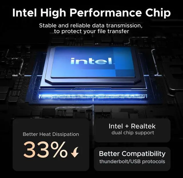 Dual-chip Design 40G Ultra-fast transmission: This product utilizes dual-chip technology with advanced 40G chip JHL7440 and 10G chip RTL9210, which allows the product to maintain the high speed while reducing heat generation and protecting your SSD.