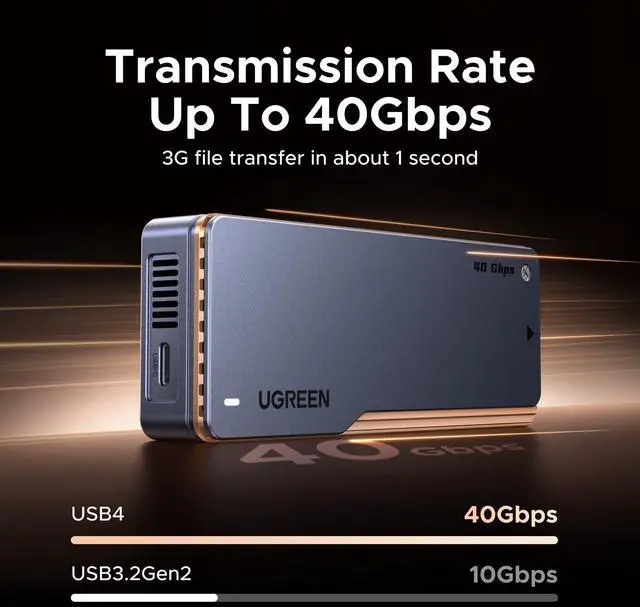 Transmission Speed in Seconds: The maximum speed can reach 3600MB/s; compatible with USB4/3.2/3.1/3.0/2.0 & Thunderbolt 3/4.NOTE: Thunderbolt 4 cables and devices are required to achieve 3600MB/s speed.