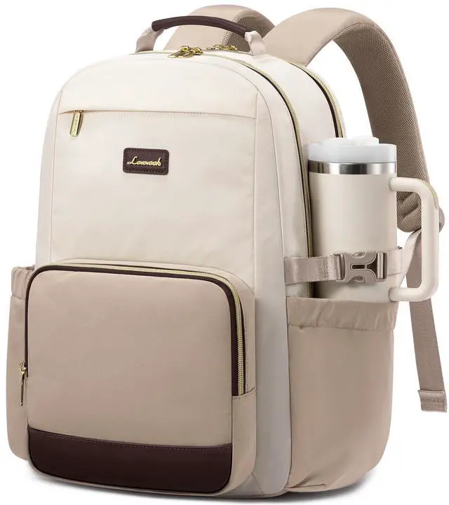 LOVEVOOK Laptop Backpack for Women with Pouch Pocket for Large Capacity Cup,18 Inch Laptop Computer Bag Travel Backpack Purse,Waterproof Work Business College Teacher Backpack,Beige-Nude-Logam Plum