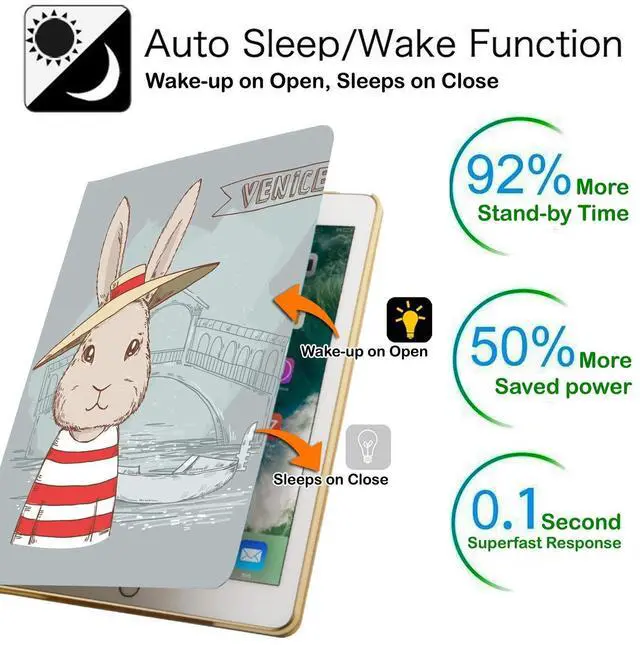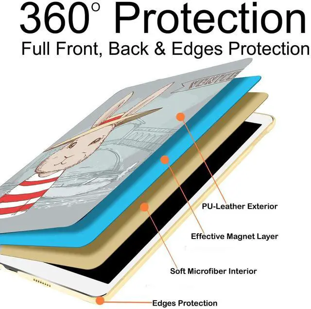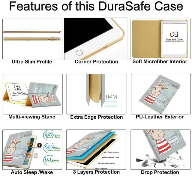 DuraSafe Cases for iPad PRO 11 Inch 1 Generation [Pro 11 1st 2018 ] A1980 A1934 A2013 MTXN2LL/A MTXP2LL/A MTXR2LL/A MTXQ2LL/A MTXT2LL/A Printed Smart PU Leather Flip Folio Book Cover - Bunny Hat