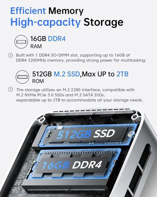 [New Update & High efficiency cooling system] - The portable mini pc features a silver case and can be stored in a bag and carried with you at any time, ideal for business trips. Save space by supper mini size(3.9x3.9x1.3 inch) and a VESA mount to install it on wall or monitors. The shape of the V1 has been recently improved, improving heat di