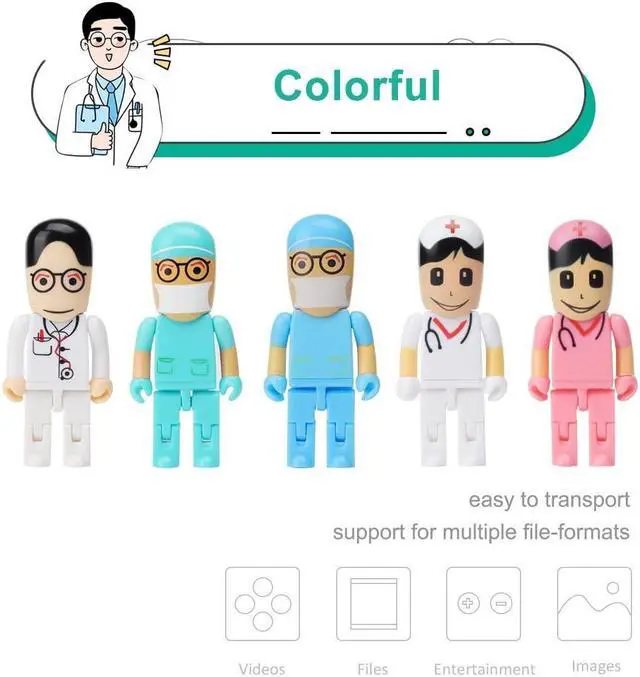Leizhan 5 x 8GB Cute USB Flash Drive, Doctors Nurses Memory Stick Drive Pendrive Gift for Kids, Teacher, Friends