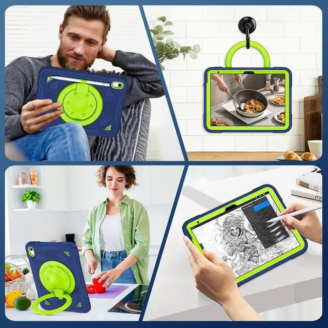 360°Rotating Stand & 180°Folds : iPad case 11th/10th generation with a 360°rotating handle that also folds 180°to give you multiple angles between 25-85 degrees of horizontal or vertical orientation,Also offers hand hold and hung on wall using by handle function,allow you use or carry much easier,perfect for a variet