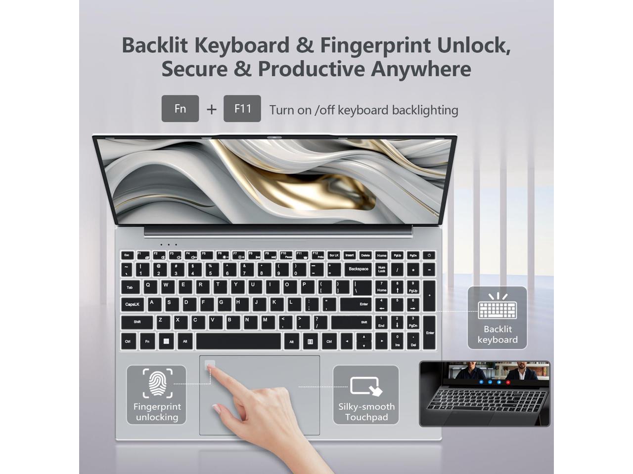 2025 Laptop, Laptop Computer with Celeron N150, Lap top with 16GB DDR4 512GB SSD, 15.6" IPS 1080P, Backlit Keyboard Fingerprint, Win 11 Pro, Portable Laptops for Work Office Student
