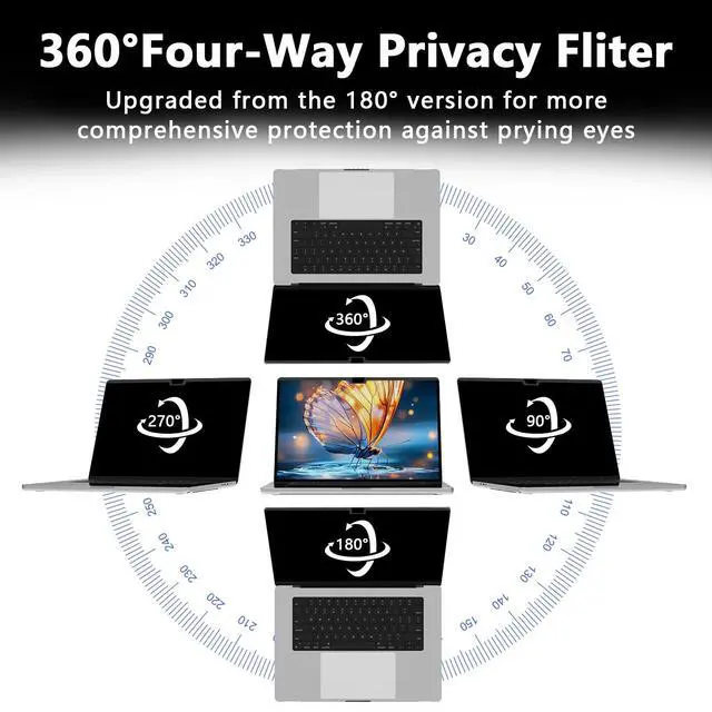 One-Second Magnetic Attachment- LUSA DESIGN privacy screen macbook pro 14 inch simply places the privacy screen along the top of your MacBook and lets the magnets attach along the top. There's no complicated placement, visibly messy tape, or damaging adhesives. Not only is it easy to remove, but it doesn't damage the screen in any way. We included a storage clip, when not in use place it in the storage clip to prevent scratches and lost.