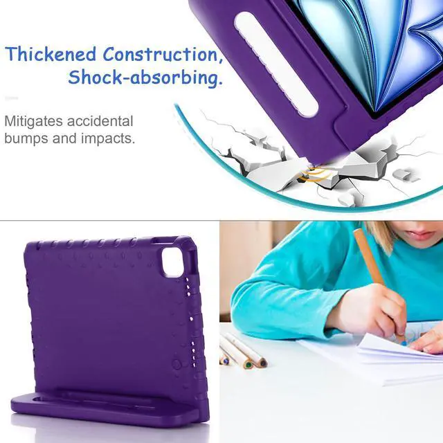 Kids Case for iPad Pro 11" M5 M4 & iPad Air 11" 2025/2024 Shockproof Case with Pencil Holder, Techcircle Rugged Handle Stand Lightweight EVA Foam Bumper Protective Child Drop Proof Cover, Purple