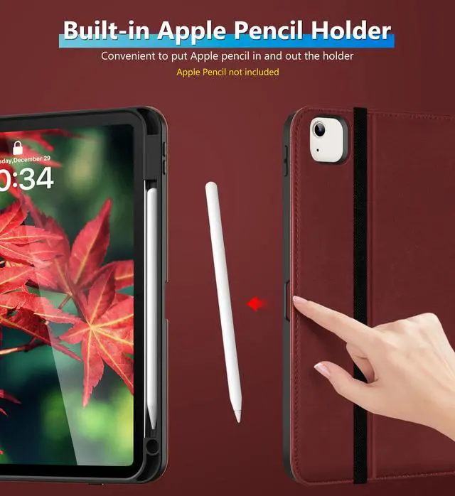 Built-in pencil holder, Pencil holder securely carries and protects your Apple Pencil Pro or Apple Pencil (USB-C) wherever you go. Please Note: Apple pencil not included