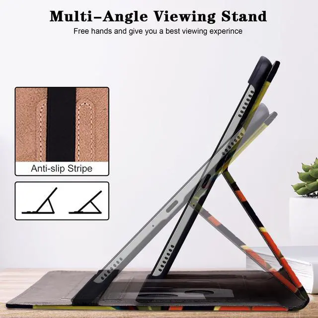 Pratical Design: The 13 inch ipad case m2 allow to adjust multiple horizontal stand angles for watching movies or typing; ipad air 13 cover built-in leather hand strap,stylus holder and three card slots/holder convenient to storage kinds of cards