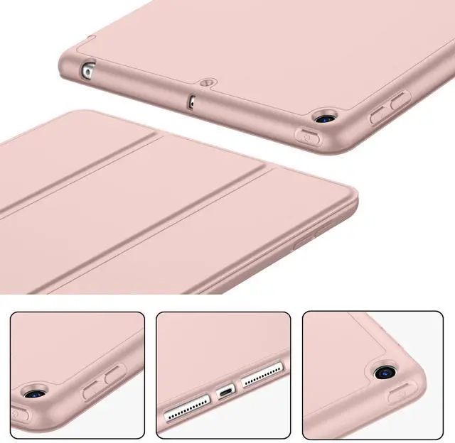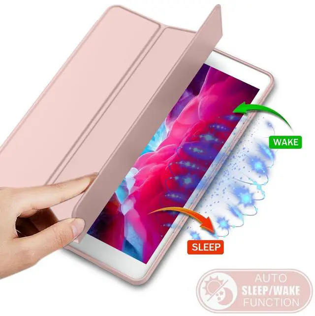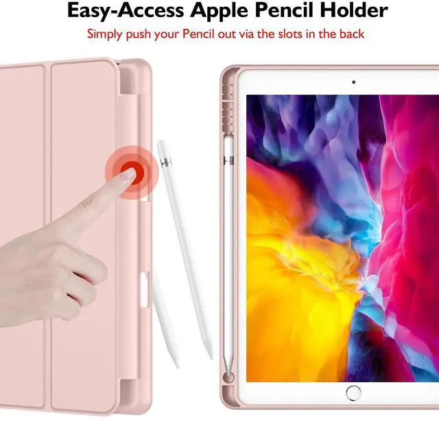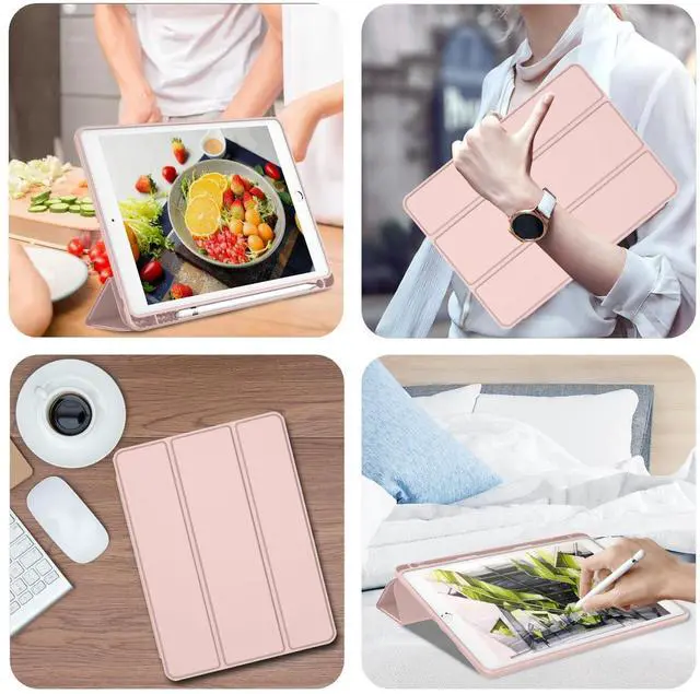 iMieet iPad 9th Generation Case 2021/iPad 8th Generation Case 2020 10.2 Inch with Pencil Holder, iPad 7th Gen 2019 Case with Soft Baby Skin Silicone Back, Auto Wake/Sleep Cover (Rose Pink)