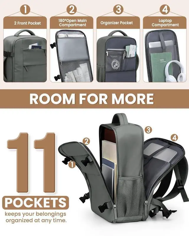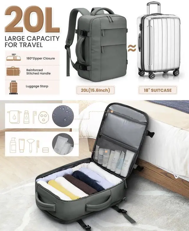 20L Capacity & 11 Pocket Design: Stay organized and stress-free with our laptop backpack. With a spacious main compartment designed to accommodate shoesclothes and other essentials. Inside the main compartment, a convenient mesh pocket for keeping smaller items secure and visible. Additionally, a wet bag is included perfect for storing damp clothes, toiletries, or other items. Also included a padded laptop compartment and convenient side pockets, you'll find a perfect spot for every item.