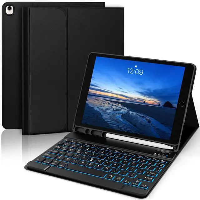 YUNPLE for iPad 9th 8th 7th Generation Case with Keyboard 10.2" - 7 Color Backlit Wireless Detachable Keyboard Cover with Pencil Holder, Compatible with iPad Pro 10.5 /Air 3rd Gen (Black)