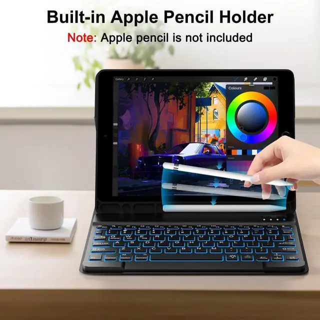 Sleek 7 Colors Backlit Keyboard- This for ipad 8th generation sleek keyboard case featuring 7 backlit color options and 3 brightness levels. The ergonomic scissor keys ensure quiet, comfortable typing, while the spacious layout makes it easy to work, browse, and type anytime, anywhere.