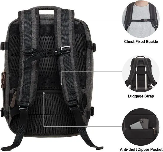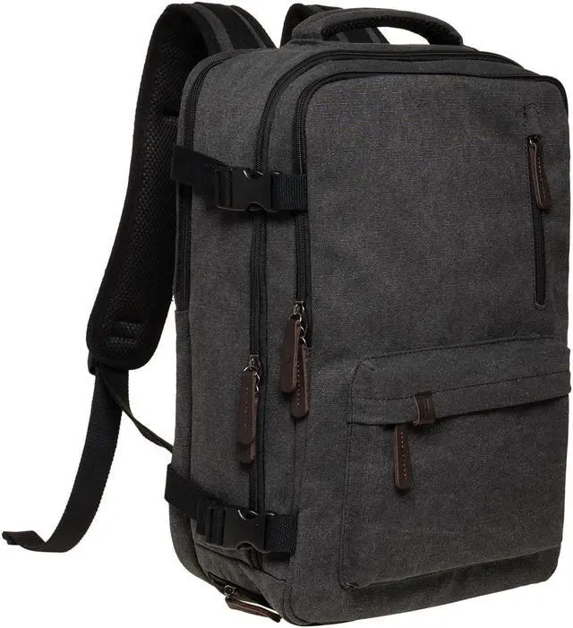 KAUKKO Canvas Travel Backpack, Personal Item Airline Approved, Carry On Backpack with Multi-Pockets and Shoe Pouch, fit 15.6 inch Laptop, 40L Weekender Bag, 11-BLACK