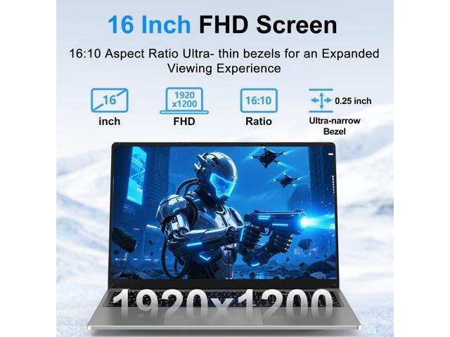 - 16" Full-View HD Display Immerse in vibrant visuals on the 16-inch Full HD IPS panel (1920×1200). With a 90% screen-to-body ratio and 16:10 aspect, it expands workspace for streaming, design, or daily tasks. The anti-glare panel material reduces eye strain in prolonged use, while precise color calibration delivers true-to-life visualsideal for creators and productivity user