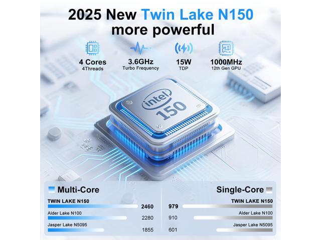 - Powerful Quad-Core Performance with Long Battery LifeThe Twin Lake N150 processor (4 cores/4 threads, 0.8GHz - 3.6GHz) ensures smooth operation for office tasks and light gaming. With WiFi 5 for fast wireless connections and Bluetooth 4.2 for seamless device pairing, enjoy uninterrupted multitasking. Whether you're juggling emails, streaming content, or joining video calls, this laptop keeps pace effortlessly.