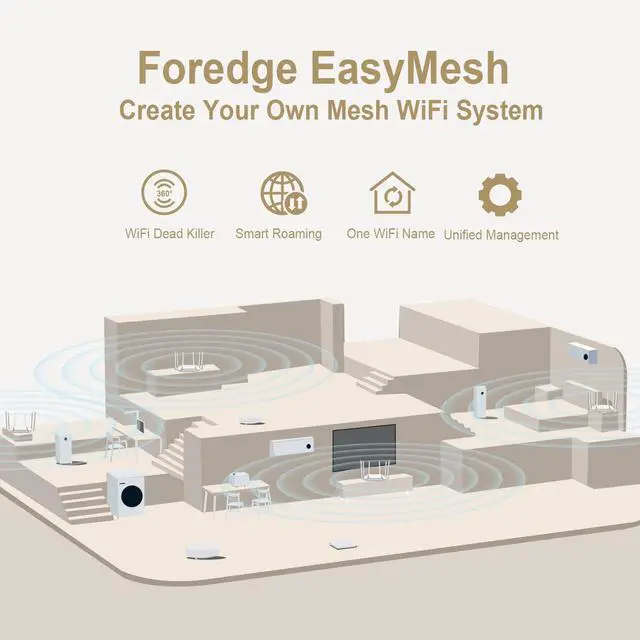 Extend Your Coverage with EasyMesh: Add EasyMesh-compatible wifi router wifi 6, range extenders, and wireless powerline adapters to form a seamless whole-home network that eliminates dead zones while reducing signal drops and lag when moving throughout your home