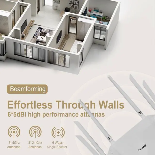 3000 Sq.ft. Enhanced Coverage: Boost your Wi-Fi signal by 6*5dBi Omnidirectional Antennas,connect up to 128 devices,Enjoy strong and reliable connections, even in hard-to-reach wifi routers for home