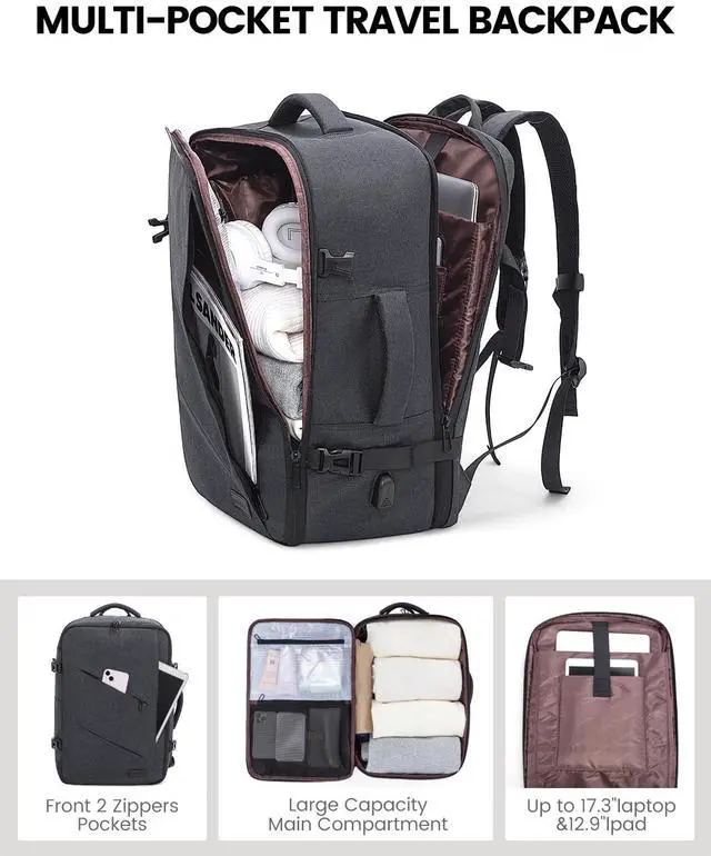 LOVEVOOK Travel Carry on Backpack, Large 40L Personal Item Travel Bag for Men & Women Flight Approved with 3 Packing Cubes, Suitcase Water Resistant Luggage Daypack Business Weekender Bag