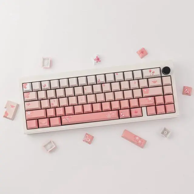 Tsungup PBT Keycaps Cherry Blossom Keycap Set - Custom Side Printed Pink Keycaps, 135 Keys Gradient DoubleShot Sakura Key caps Cherry Profile Keyboard Key caps for Mechanical Keyboards