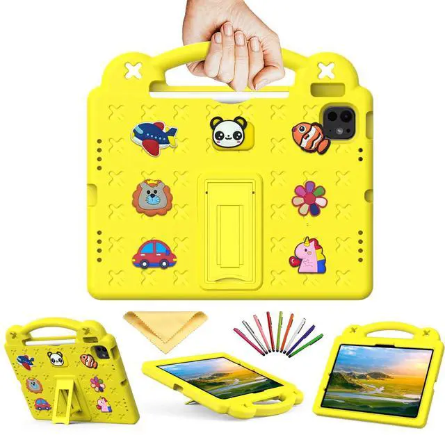 UUcovers for iPad Air 11 inch Kids Case M3/M2 (2025/2024) & iPad Pro 11 Inch M4 Case 2024 with Pencil Holder/Handle/Kickstand/Cute DIY Soft EVA Shockproof Stand Lightweight Tablet Cover, Yellow Bear