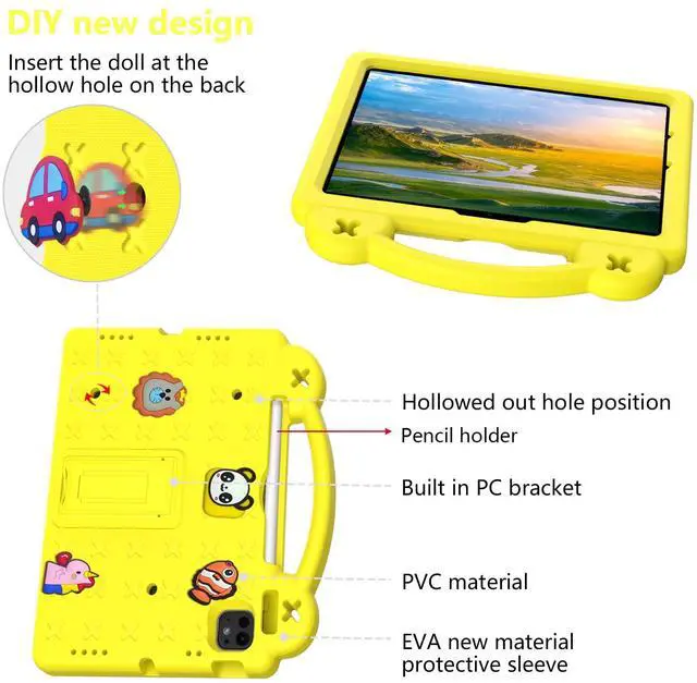Comes with colorful, removable cartoon patches that kids can decorate freely, adding fun and personal style to their tablet.