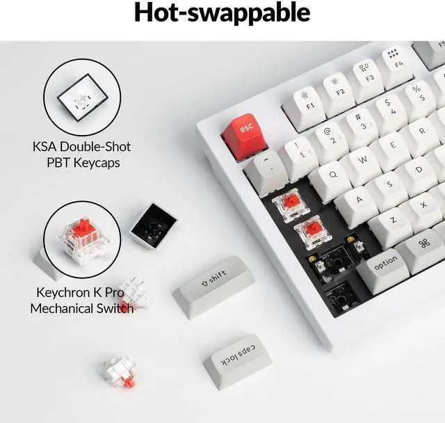 Keychron Q5 Pro is a fully customizable 96% layout QMK/VIA wireless mechanical keyboard with a full aluminum body. Along with our many premium designs, including double-gasket, open-source key remapping (incl. knob), flexible PC plate, hot-swappable, KSA Double-Shot PBT Keycaps, screw-in stabs, etc., it is designed to deliver a premium typing experience for users.