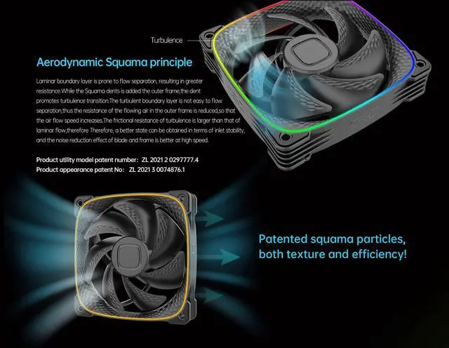 Squama particle Patent Squama particle on the frame, reducing turbulent flow noise increase airflow and pressure efficiency