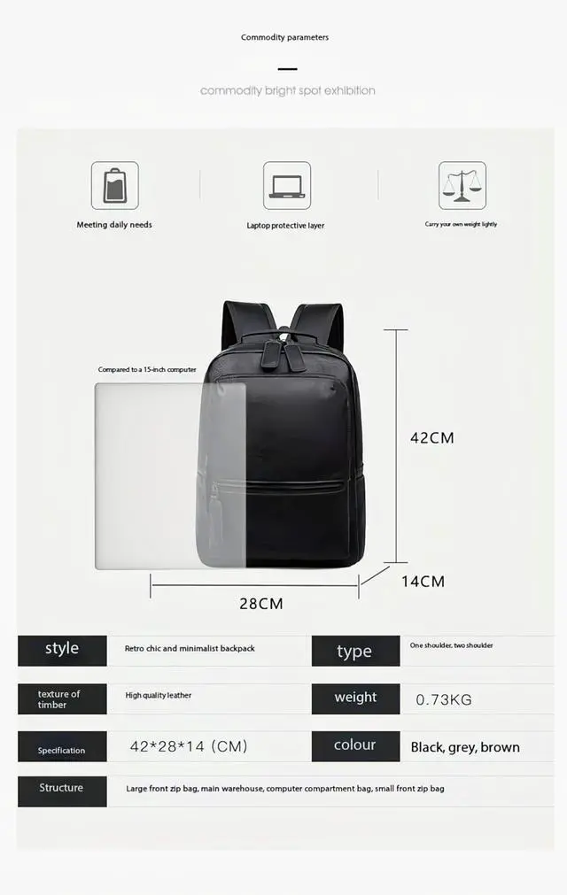 This PU leather laptop backpack has a stylish and unique design, don't miss out on this stylish and practical leather backpack!