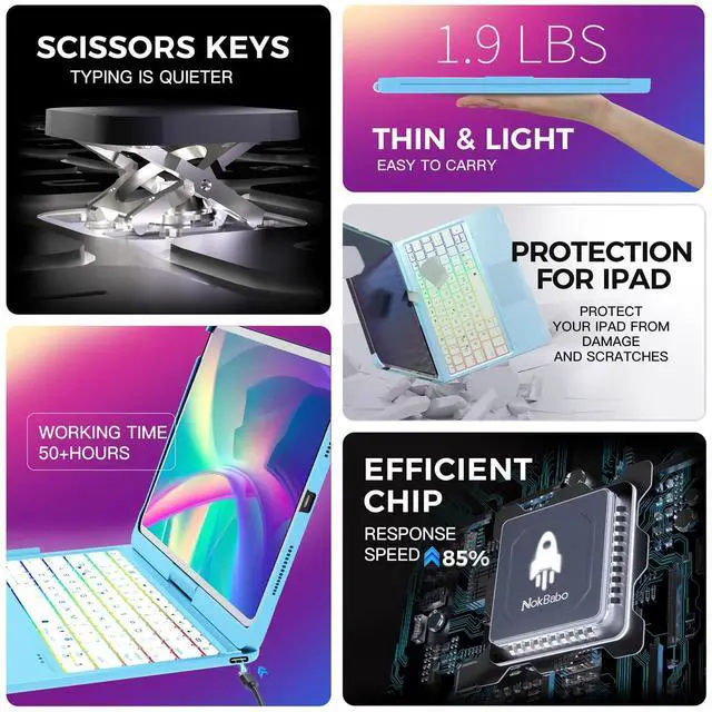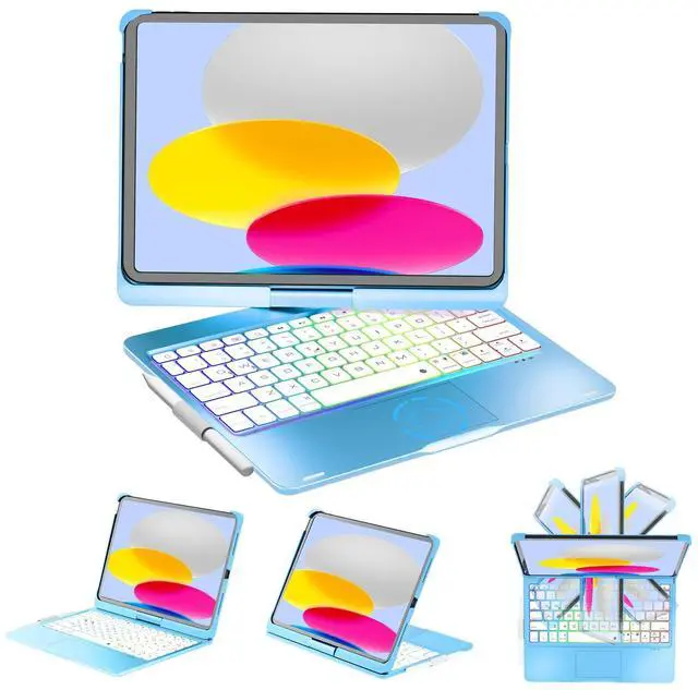 NOKBABO for iPad 10th 11th (A16) Generation Case with Keyboard, iPad Air 11 inch case (M3/M2), Keyboard for iPad Pro 11 (4th/3rd/2nd/1st) & iPad Air 5/4th, Trackpad, 360° Swivel, Backlit - Sky Blue