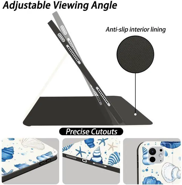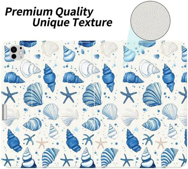 This cute seashellknot case with pencil holder designed for iPad Air M2/M3(2024/2025), 13 Inch/iPad Pro(2022/2021/2020/2018), 12.9 Inch.