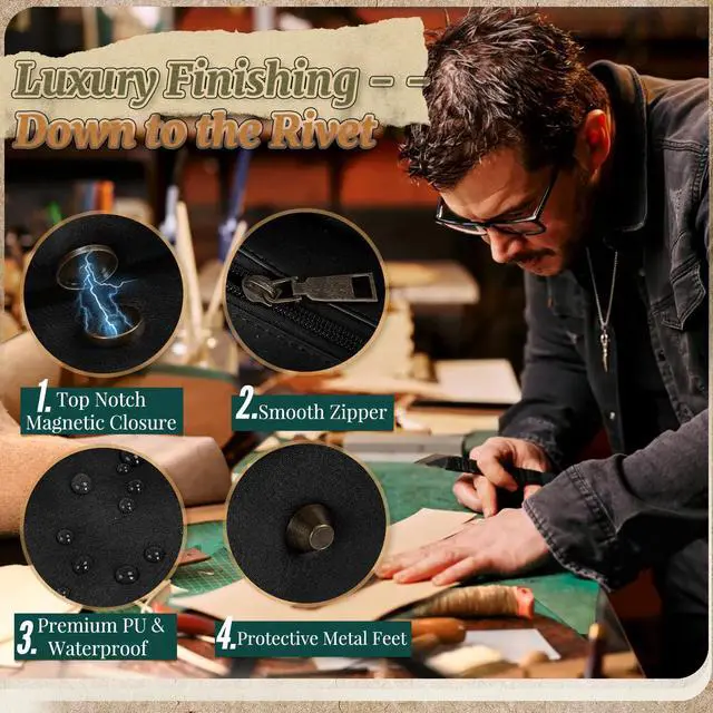 Premium Design & Timeless Appeal: Crafted from high-quality PU leather that mimics genuine leather, leather briefcases for men exudes a luxurious, vintage charm while delivering unmatched durability. Each piece is meticulously handcrafted for a polished finish, featuring a sturdy polyester logo-lined interior that resists daily wear and tear. The elegant silhouette and artisanal details of the computer bags for laptops for men create a statement piece that elevates any outfit