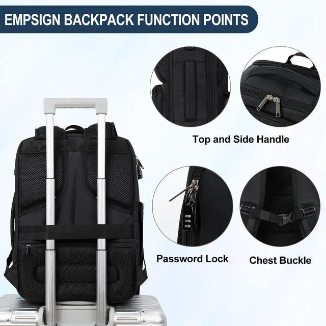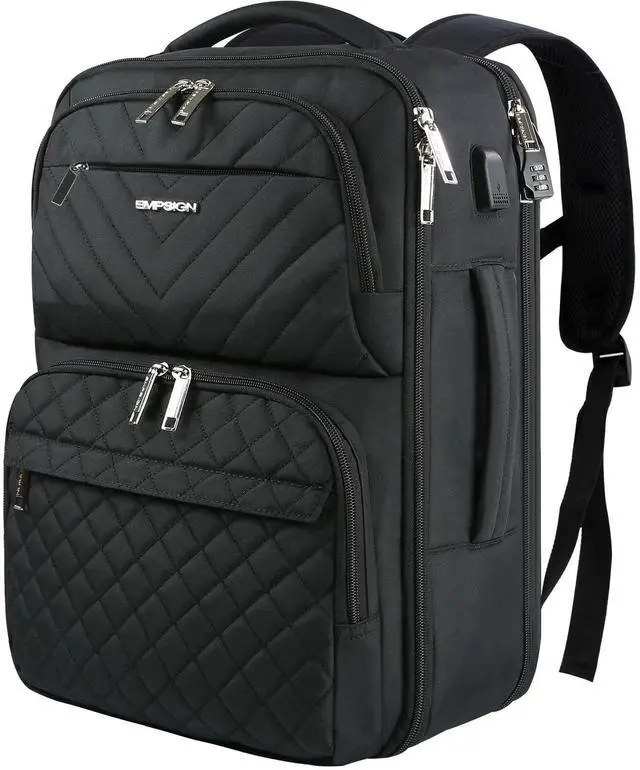 EMPSIGN Travel Backpack for Women, Large Carry On Backpack Airline Approved Personal Item, 17 inch TSA Friendly Laptop Backpack with USB Port, Casual Daypack for Weekender Business Hiking, Black