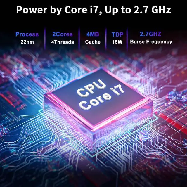 Core i7This laptop has a high-performance processor, dual core design, and four thread technology. The CPU frequency is 2GHz, and the highest frequency can reach 2.7GHz. It is a level 3 cache of 4M. These features can make it easy for you to work, program, learn, and more.