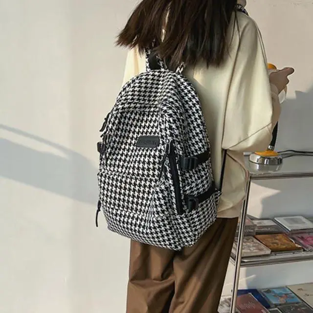 Large Capacity: Measuring 12.6" x 17.3" x 5.1in (L x H x W), this cute plaid backpack offers ample storage space for daily essentials such as iPad, laptop, notebook, cell phone, wallet, water bottle and more.