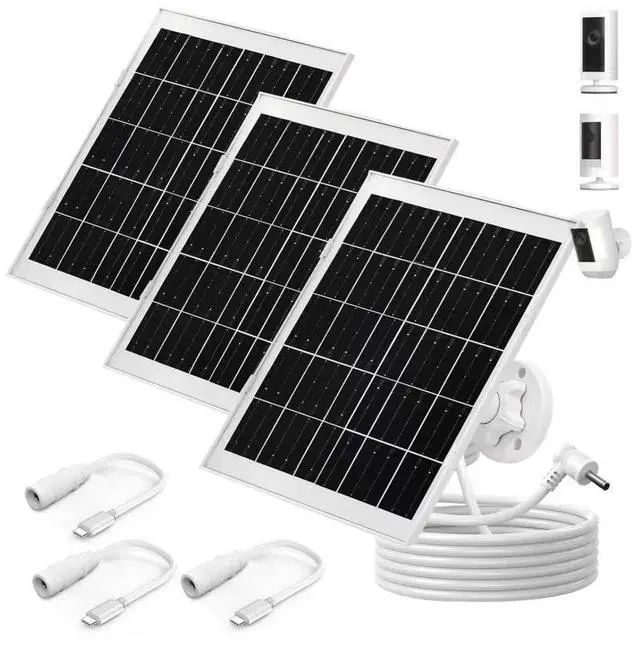 Enhance your home security system today with our triple pack solar panels tailored specifically for Ring Spotlight Cam Battery And Ring Stick Up Cam (Pro) / Ring Spotlight Cam Plus/Pro Power.