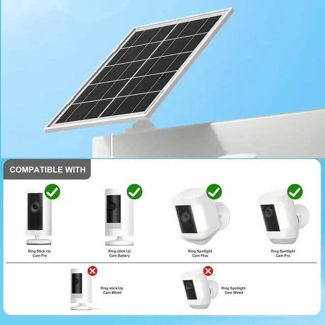Ring Solar Panel Is specially Designed For Ring Spotlight Cam Battery And Ring Stick Up Cam (Pro) / Ring Spotlight Cam Plus/Pro Power
