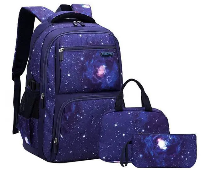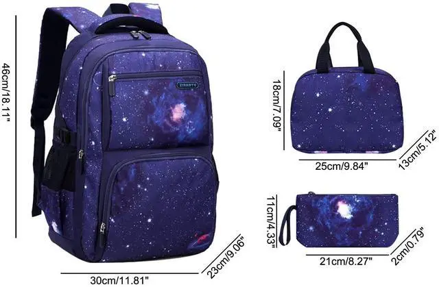 JiaYou Space Pattern Galaxy Backpack Boys Primary Junior Middle School Daypack Men High Middle School Laptop Bag(Star-Blue, 3Pcs Backpack Set)