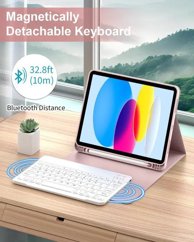 Lsmmpoba for iPad (A16) 11th/10th Generation Case with Keyboard 11/ 10.9 inch (2025/2022), Detachable Wireless Bluetooth iPad Keyboard Case Thin & Light with Built-in Pencil Holder, Light Pink